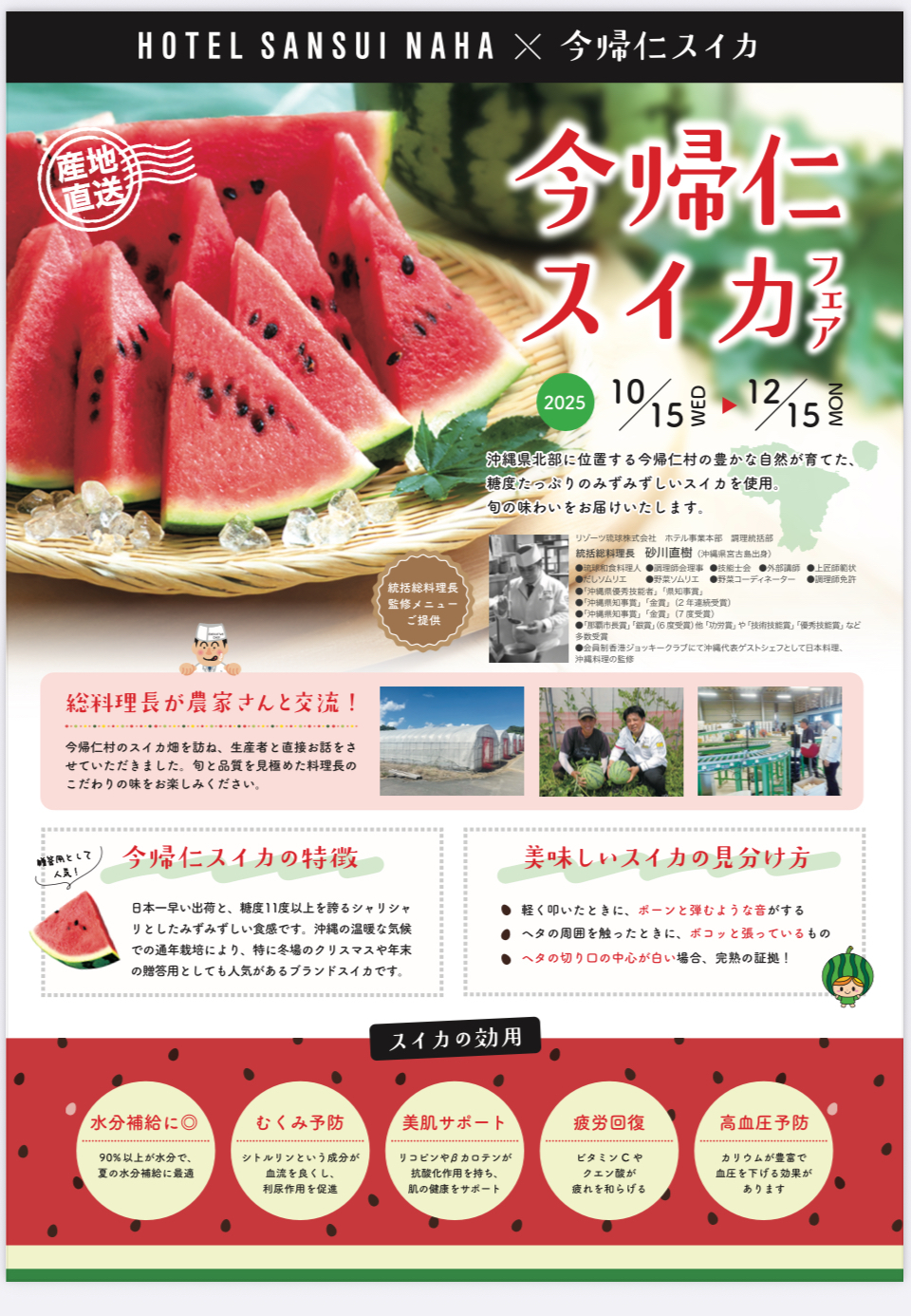 糖度たっぷりでみずみずしい“今帰仁スイカ”を使用した特別フェアを開催いたします。